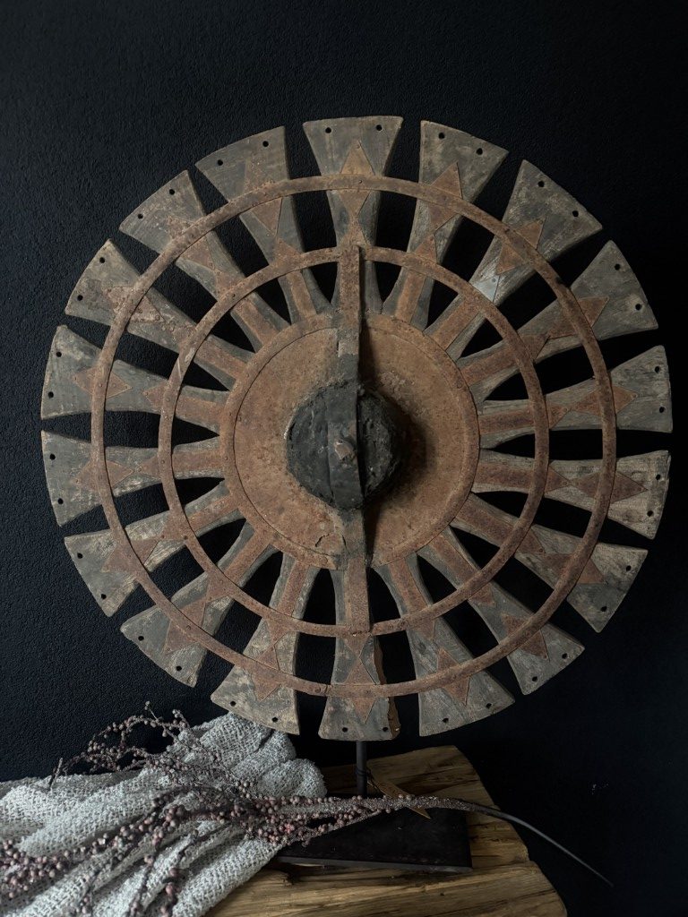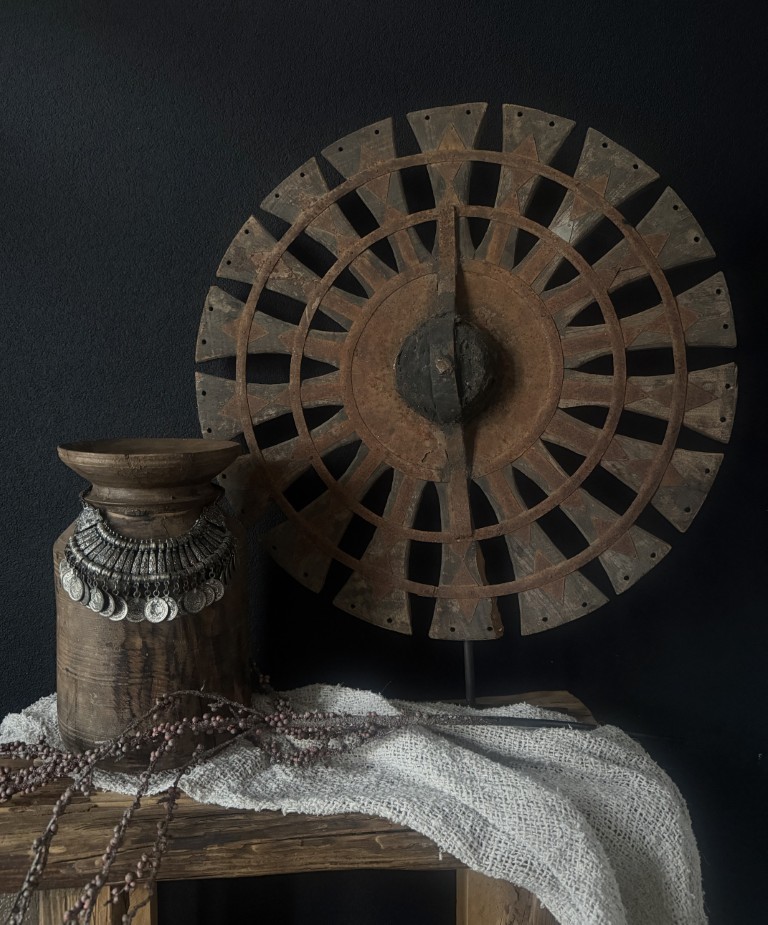 Dit authentieke, oude houten spinnewiel is een prachtig decoratief object met karakter en geschiedenis. Voor wie van unieke woonaccessoires houdt, is dit een echte musthave! Door de doorleefde uitstraling, het verweerde hout, de metalen details en de sobere afwerking past dit spinnewiel perfect binnen een landelijk en stoer interieur. Elk exemplaar is uniek en draagt zijn eigen sporen van het verleden, wat zorgt voor een warme en authentieke sfeer in huis. Het spinnewiel kan prachtig ter raamdecoratie dienen, maar staat ook geweldig op een dressoir of kast. Combineer het spinnewiel bijvoorbeeld met een stoere shabby doek of één van onze andere unieke woonaccessoires!