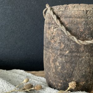 Mooie, oude, houten Nepalese pot met een verweerde look. Een Nepalese pot past prachtig in een stoer en sober interieur. Iedere pot is uniek met een eigen vorm en kleur. Combineer de pot met een stoere Shabby doek, een droge toef of een mooie (kunst)tak.