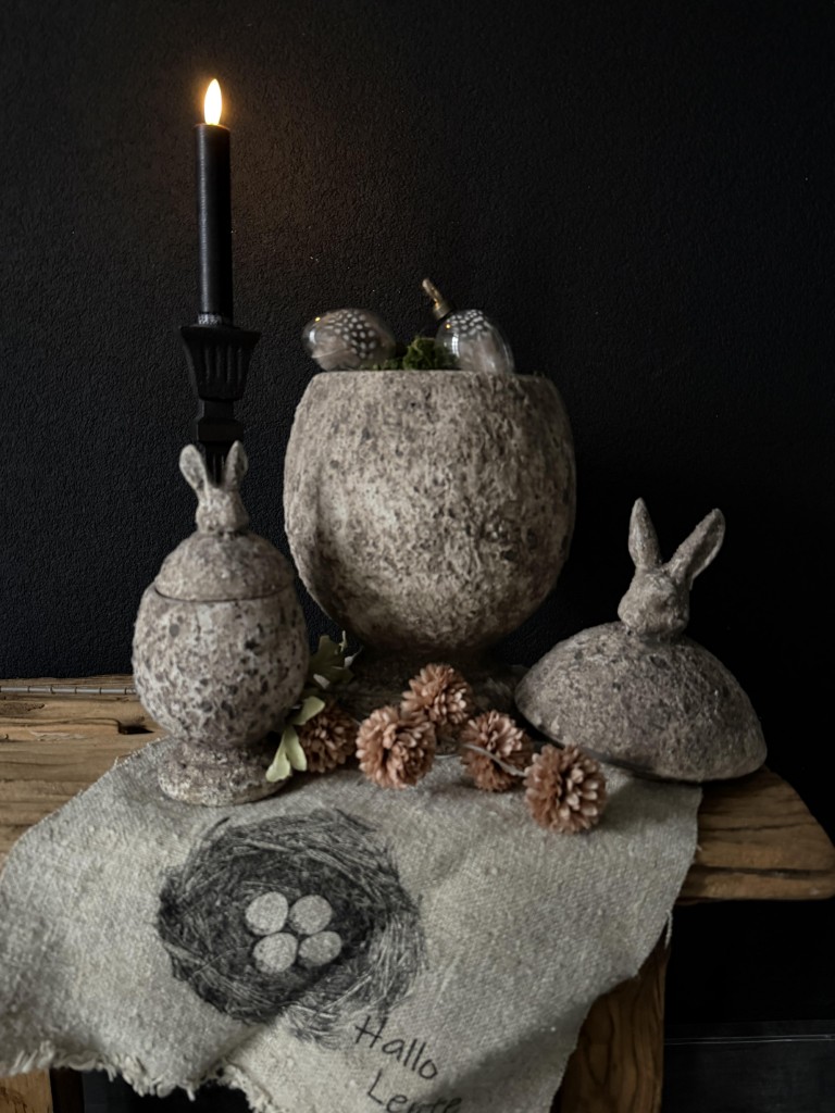 stenen opbergpot (ei met haas) countryfield
